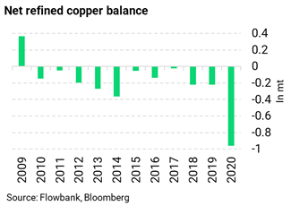 Fast alle Basismetalle, die in London und Shanghai gehandelt werden, befinden sich derzeit in einer "Super-Backwardation", d. h. in einer Situation, in der die Preise für sofortige Lieferungen höher sind als die Benchmark-Kontrakte. Die Pandemie von 2020 führte zu erheblichen Problemen in der Lieferkette und zu Ungleichgewichten auf den Rohstoffmärkten. Heute sind die weltweit zugänglichen Kupfervorräte so stark gesunken, dass die Verbraucher offenbar Angst vor einer Verknappung haben. Eine Schätzung der Erzeuger- und Verbrauchervorräte zeigt, dass die Bestände nur noch 4 Tage betragen, was deutlich unter dem Durchschnitt von 14 Tagen im Jahr 2015 liegt. Ironischerweise hat der verstärkte Fokus auf die Umweltauswirkungen der Bergbautätigkeit dazu geführt, dass die Industrie nicht mehr in der Lage ist, schnell zu reagieren