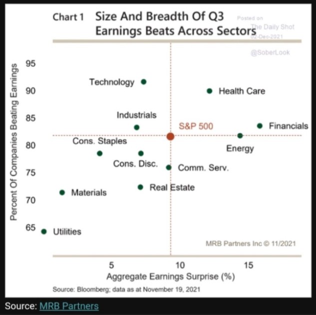 #Energy and #Financials saw record sector performances YTD amid low expectations at the start of the year. #Technology is seen as more resilient with a decent percentage of firms beating earnings for Q3. #Utilities were a clear outlier in earnings, still performing, but less so than counterparties.
