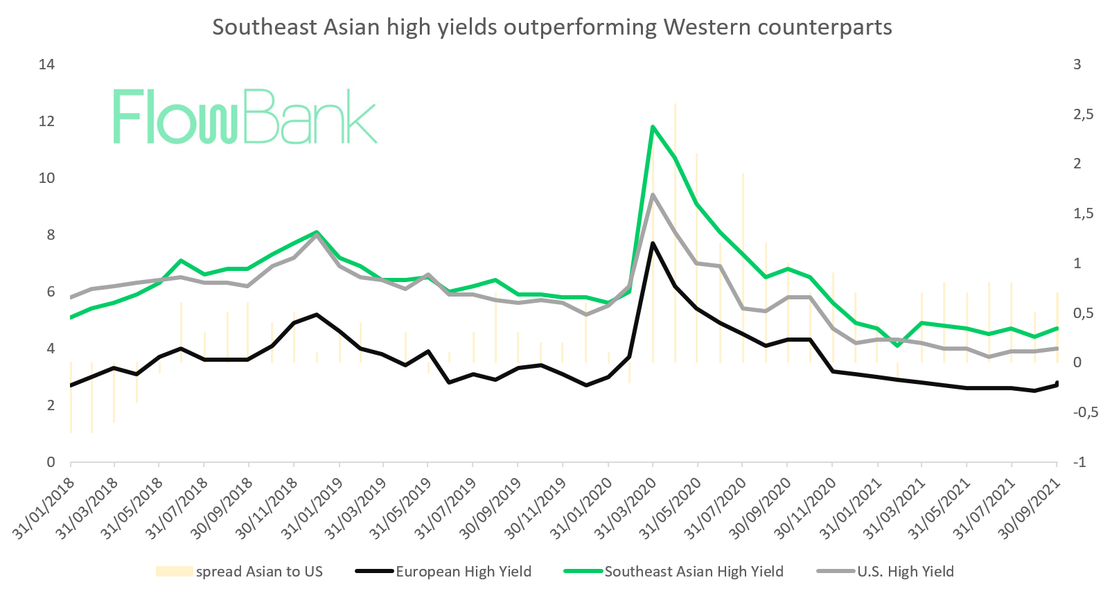 Despite a disappointing third-quarter gross domestic product, U.S. real yield rose, while German real yield saw its biggest daily drop in 8 months this week for a record low at -2.13%. Source: Flowbank, Bloomberg