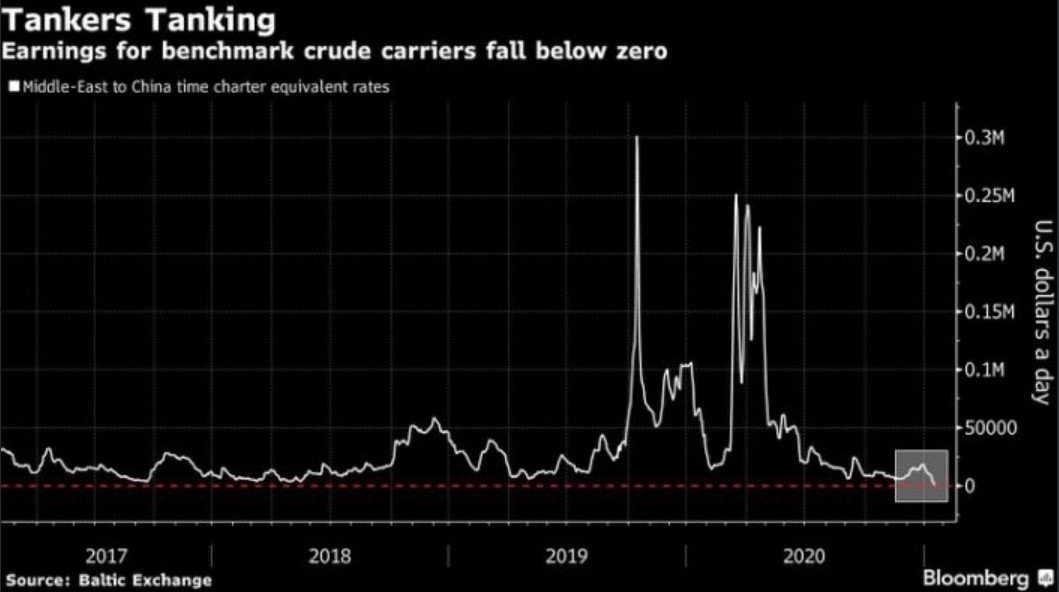 Supertankers delivering 2 million barrel cargoes of Saudi’s oil to China are losing $736 a day for the privilege, according to data from the Baltic Exchange. Owners could mitigate such losses by ordering captains to sail the vessels slower, but some ships are losing money because of their Middle East-to-Asia deliveries. Saudi Arabia cutting oil production has hit the tanker business with less deliveries needed. TK, EURN, and STNG lead the 5 biggest oil tanker companies list, time to short or risk the buy ?-Bloomberg