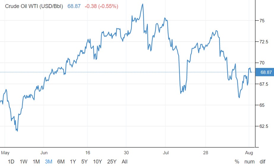 Oil prices fell for the second day on Friday, and are on track to fall 0.5% weekly, after the International Energy Agency (IEA) warned that rising demand for crude may come to a halt in July, and will rise at a slower rate for the rest of 2021, due to a surge in infections caused by the Delta variant of Covid-19. Source: Trading Economics