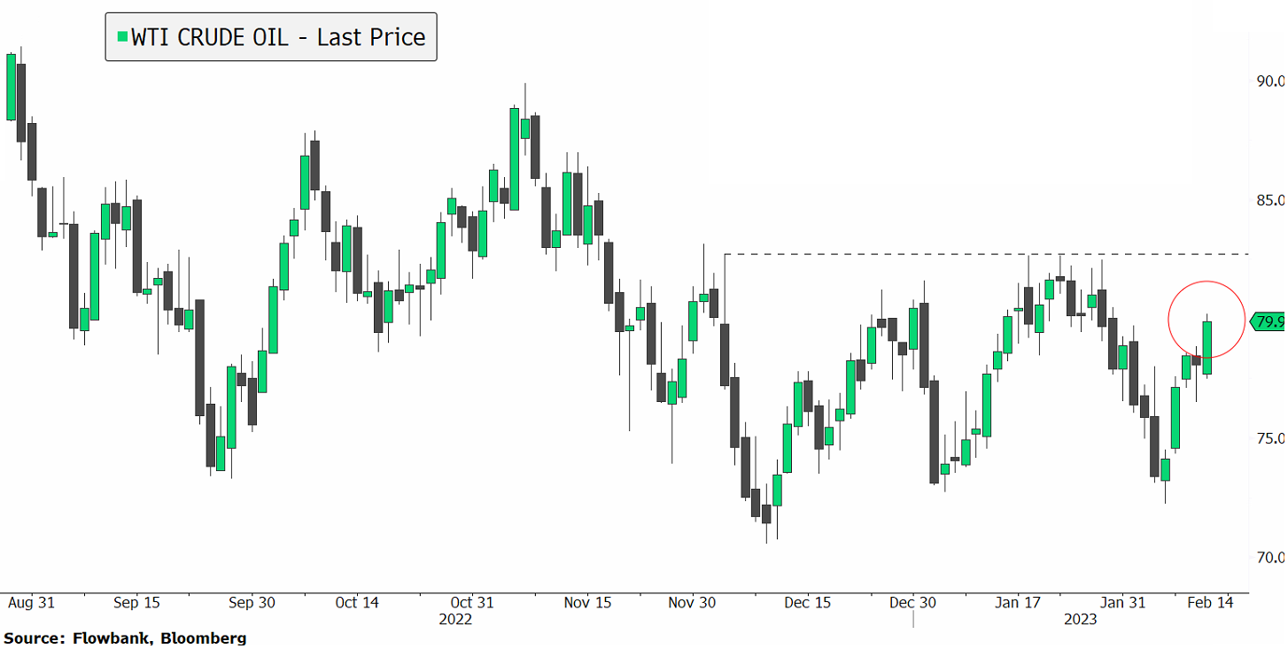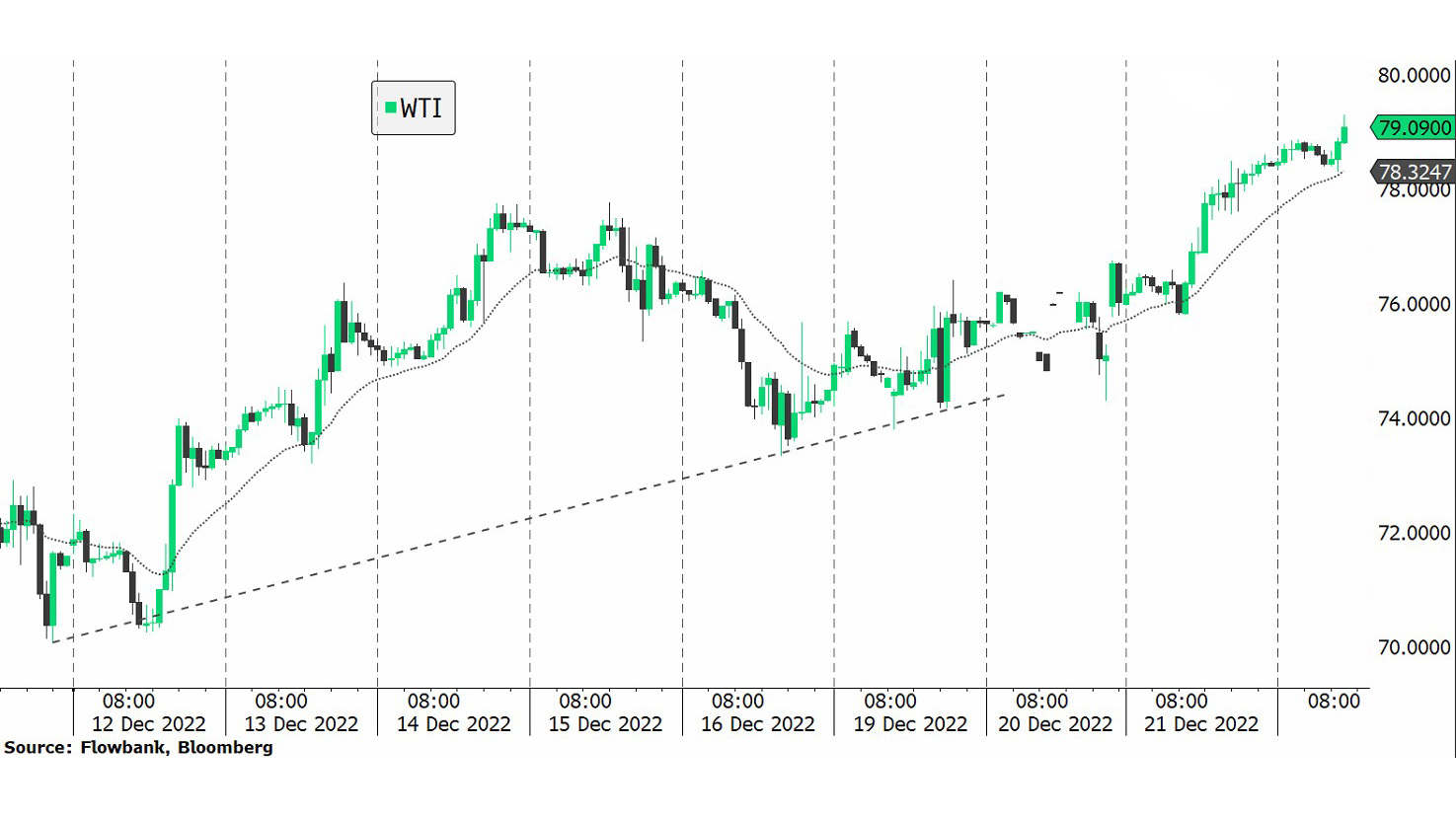 Oil prices are extending their rally that started yesterday. Lower-than-expected US inventory data together with the aggressive reopening of the Chinese economy are fueling bets for higher oil prices.