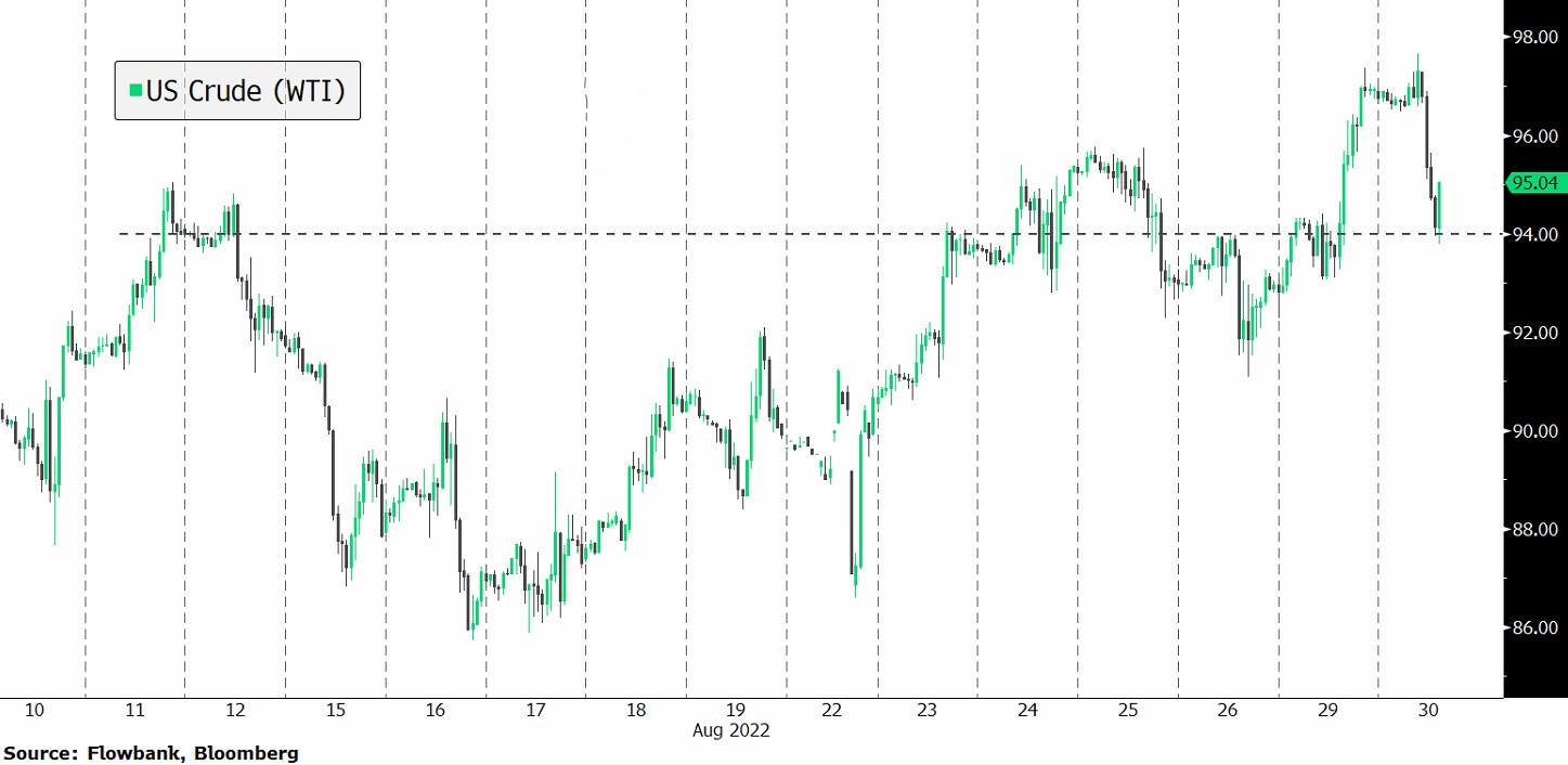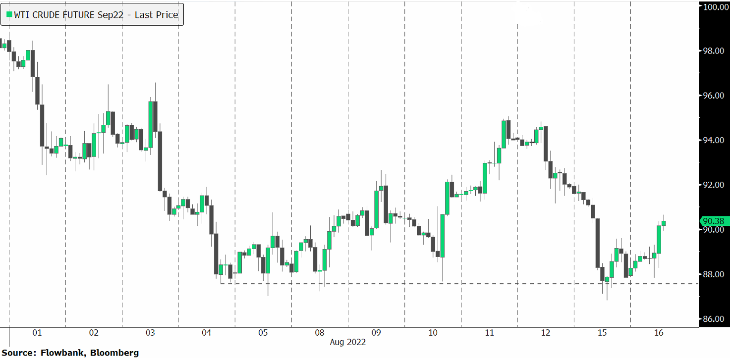 The price of oil futures turned to gains after losing 4.5% yesterday following bearish US data. This afternoon, traders are awaiting the American Petroleum Institute's newest weekly report on the stock of US crude oil.