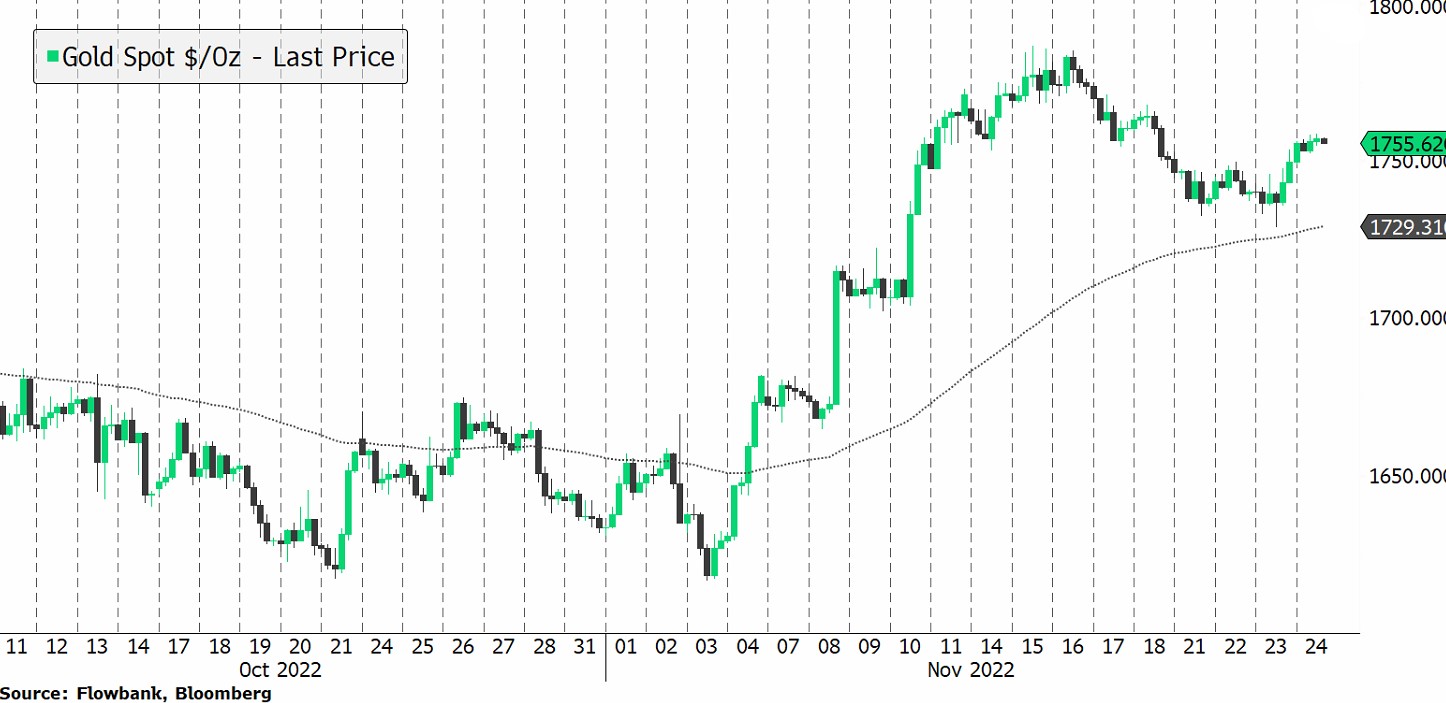 The value of gold is on the rise breaking the $1.750 an ounce threshold, this comes with the fact the US Federal reserve's most recent meeting indicated slower interest rate hikes.