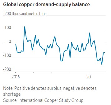 Copper is widely recognized as a proxy for macroeconomic health. Exorbitant commodity prices led producers to cut capital spending on major resources by nearly half over the last decade, shrinking stocks of industrial metals to 20 year lows and reducing the supplies across commodities. The crunch is now converging into a buying spree in key markets which is supercharging prices. The materials stretch could convert into higher prices for consumers or more broadly, force firms to shut down production as a raw-material shortages morphs into a market dysfunction.