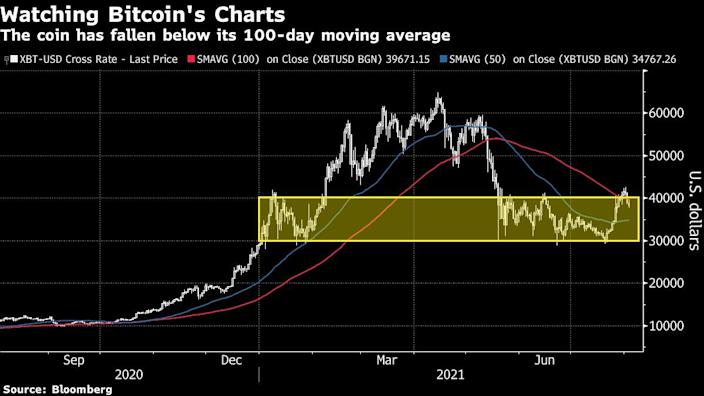 Bitcoin has lost about 7% of its value on Friday, falling from recent highs set just last week. In New York, the coin has fallen below $40,000 and is now trading within its January range at $37,914. Bitcoin has retreated below its 100-day moving average making strategists worried. Indeed, a drop below a key trendline typically portends further weakness. Source: Bloomberg