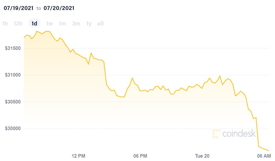 Bitcoin has been locked in the broad price range of $30,000 to $40,000 since mid-May, and briefly broke below the $30,000 mark on June 22. The cryptocurrency fleetingly traded at $29,700 a day after the People’s Bank of China ordered the country’s major financial institutions to stop facilitating crypto transactions. Source:coindesk