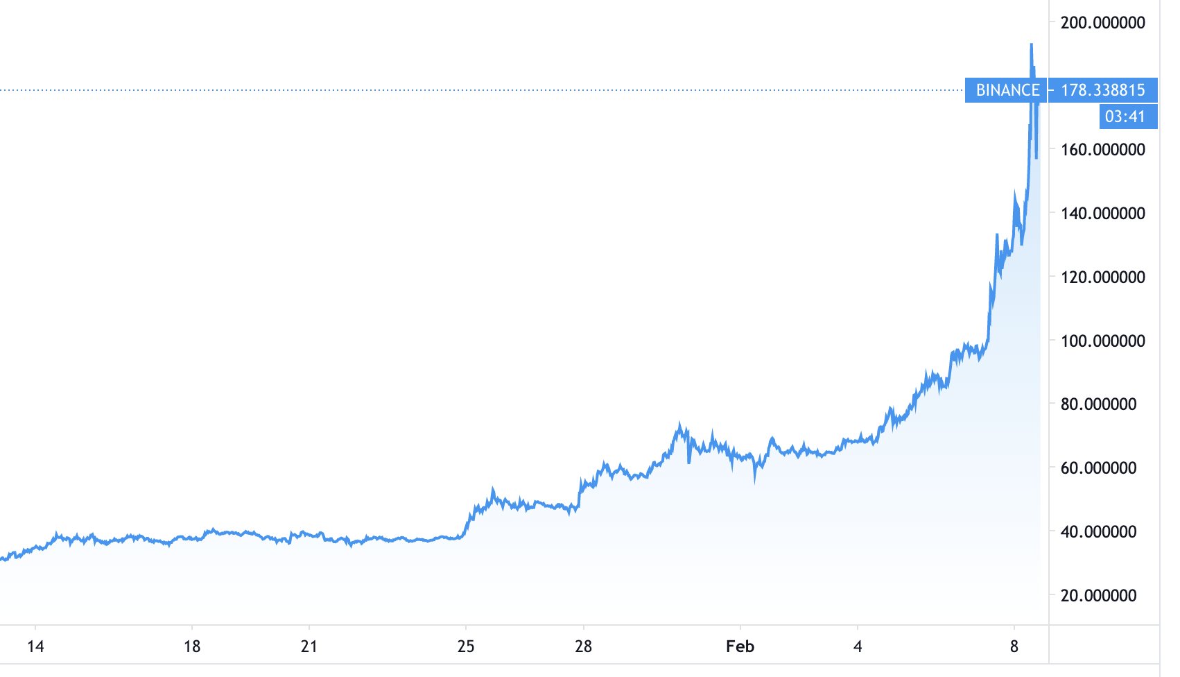 The high speed network Elrond surged 180% in the past week and 42% in the past day, resulting in a $2.9 billion market cap. This happened a week after the launch of the "Maiar" wallet, Elrond's mobile app which allows users to send and receive cryptocurrencies using only their phone number. The app has already been downloaded by 100,000 people. The token was trading at $50 last week and was pushed by enthusiast traders to a high of $191 yesterday.
