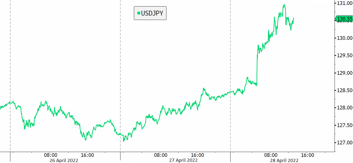 The yen dropped more than 10% against the dollar in seven weeks. The yen fell further on Thursday when the Governor of the Bank of Japan Haruhiko Kuroda doubled down on his ultra-easy settings with plans for fixed-rate bond purchases every day to keep yields in check. However, the extreme moves in the yen triggered an official from Japan's finance ministry to comment the move in the yen past the 131 mark, warrants extreme concern. But so far, policymakers have only made verbal interventions. Until Japan decides to sell some of its gigantic foreign currency reserves to buy the yen, (or change its policy), it is clear for investors that the yen will remain an easy target to sell.