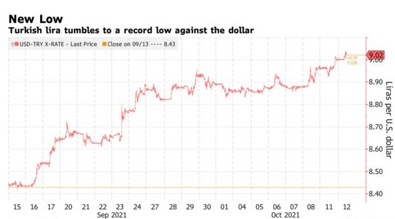 The Turkish Lira extended its slide to a record low--the currency depreciated as much as 0.4% to 9.0398 per US dollar after Erdogan hinted at eliminating threats from Syria. The move threatens to bolster tensions with the US because the US is backing Kurdish fighters located in a region Turkey opposes.