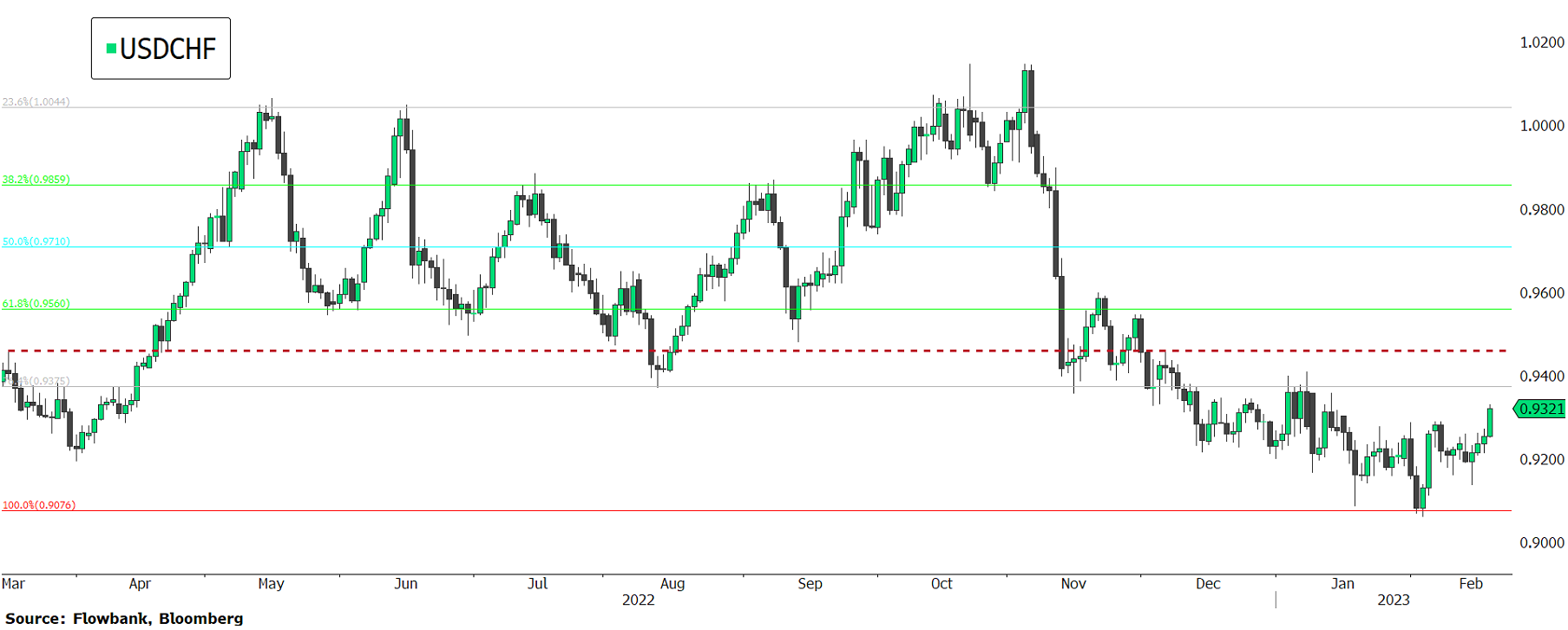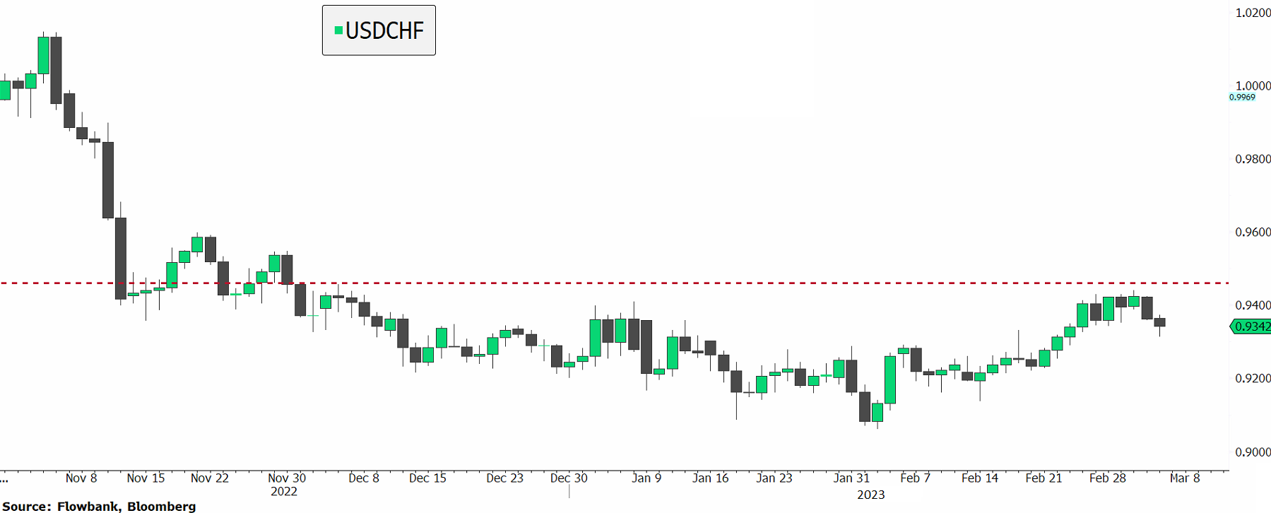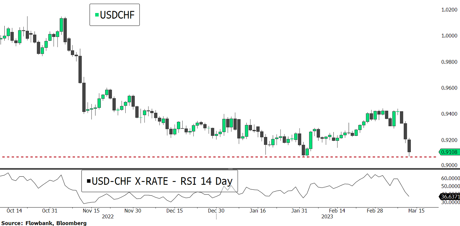 The dollar plummeted in light of falling rising interest rate expectations. The Swiss franc on the other hand surged lifted by exploding gold prices. Gold surged 2.3% on Monday to 1,910. The dollar looks oversold from a technical perspective and the USDCHF pair has support at just below 0.91.