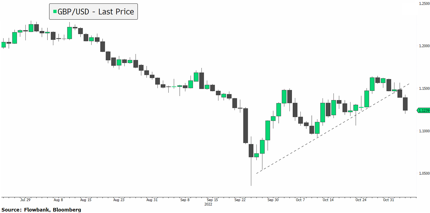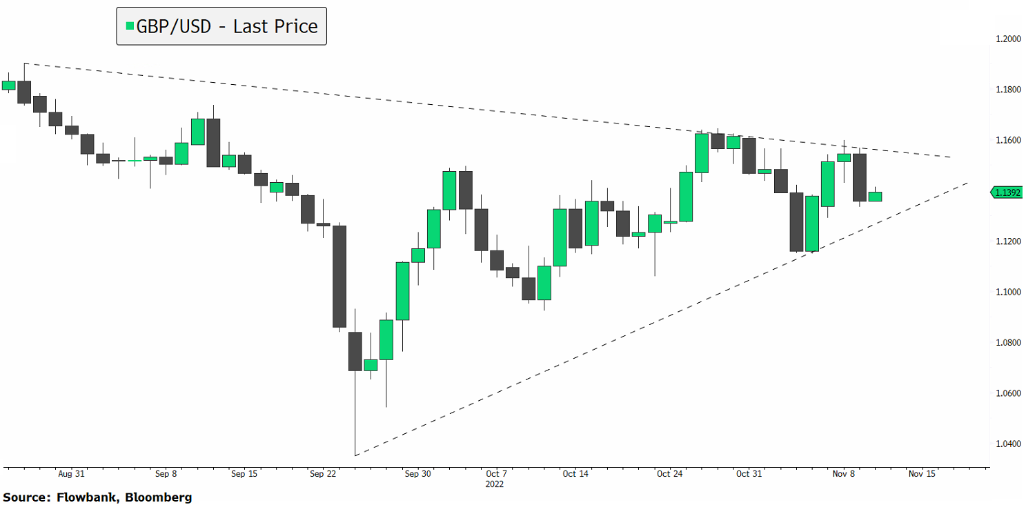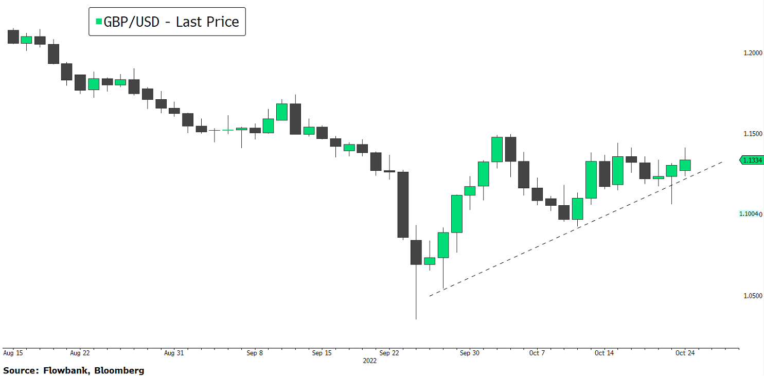 The pound sterling is up by 0.4% this morning versus the US dollar, as appetite for the greenback diminishes ahead of the US CPI data. The day is set to be volatile, as traders cannot rule out a 'hotter' inflation report than expected. Overall, investors are adopting the view that the pound sterling could stage a recovery in the coming months based on the more balanced approach of the new UK PM concerning the UK budget, to regain investor confidence. Lastly, the GBPUSD technical picture, the currency pair is showing a descending triangular pattern, and a break above ~15.5 could suggest more upside, or a break below ~1.13 could see more weakness.