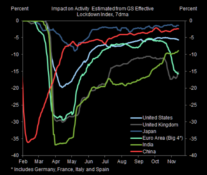 Estimations of GDP loss due to health restrictions are still high, especially in Europe.