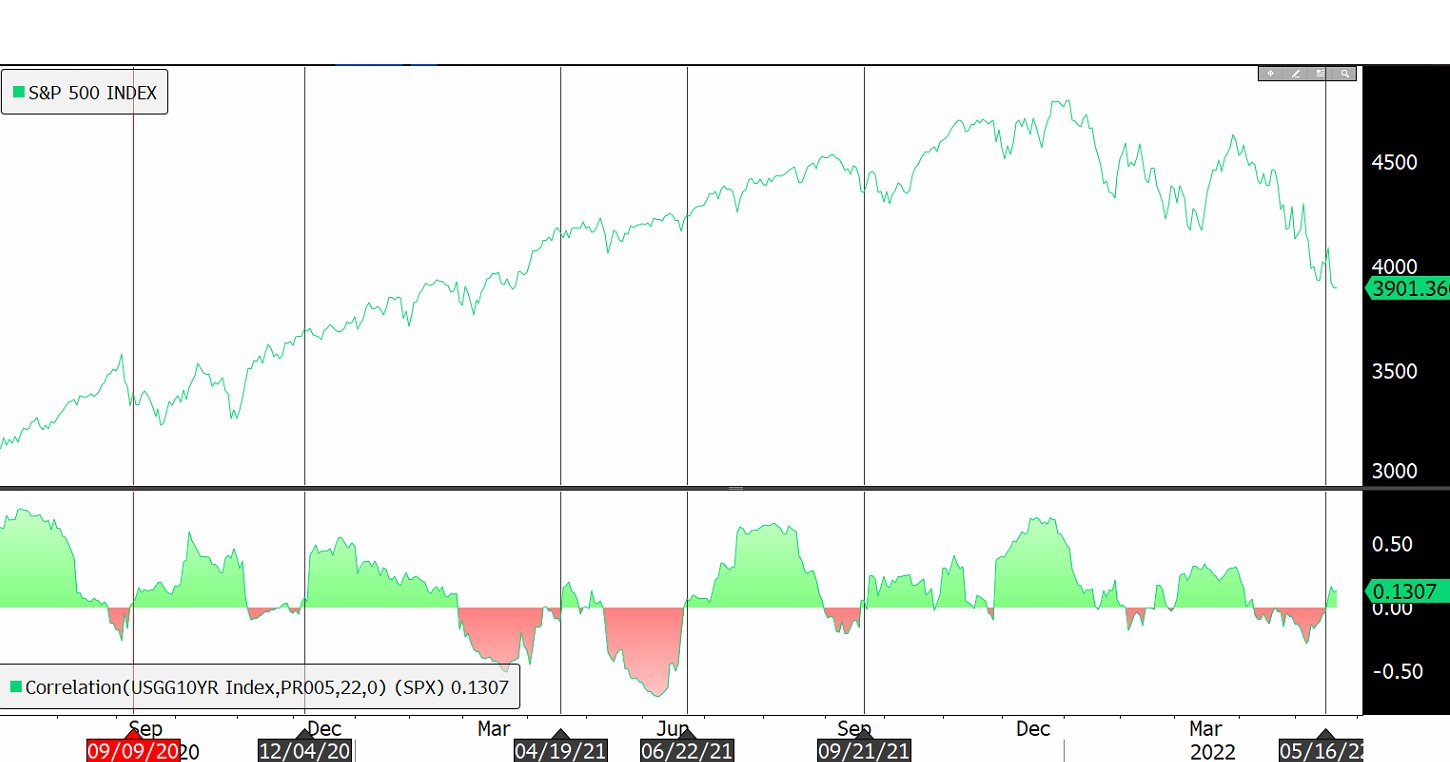 Amid a sharp fall in US stock markets for much of the past month, a fundamental shift in investors' thinking appears to be taking place, one which analysts describe as a "growth scare". A growth scare is characterized by a correction in anticipation of slowing economic growth. For a good portion of this year, bonds displayed a positive correlation with equities: that is, a selloff in bonds was accompanied by a selloff in equities. However, now, we're seeing bonds rally while equities continue to drop. The subtle shift is that bonds are starting to act as a safe haven as markets are expecting that aggressive tightening is rising risks of demand destruction which is likely to lead to lower growth.