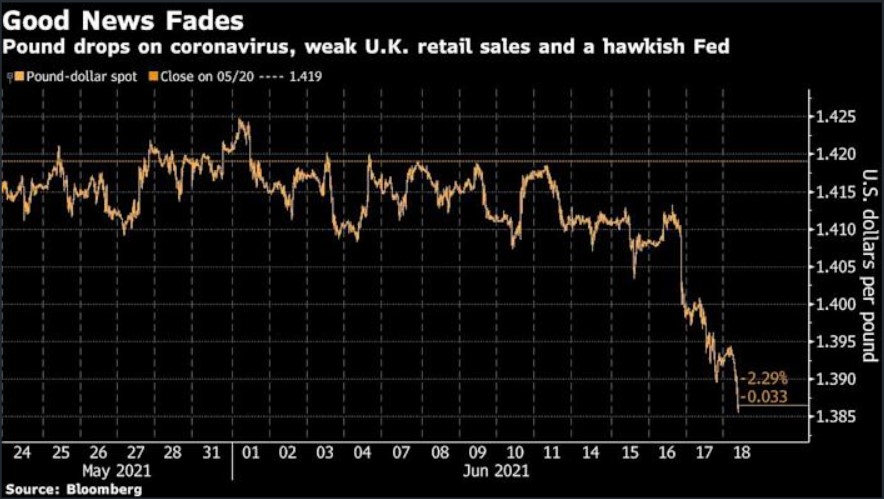 Sterling strained on virus return, poor UK retail sales, and a hawkish Fed