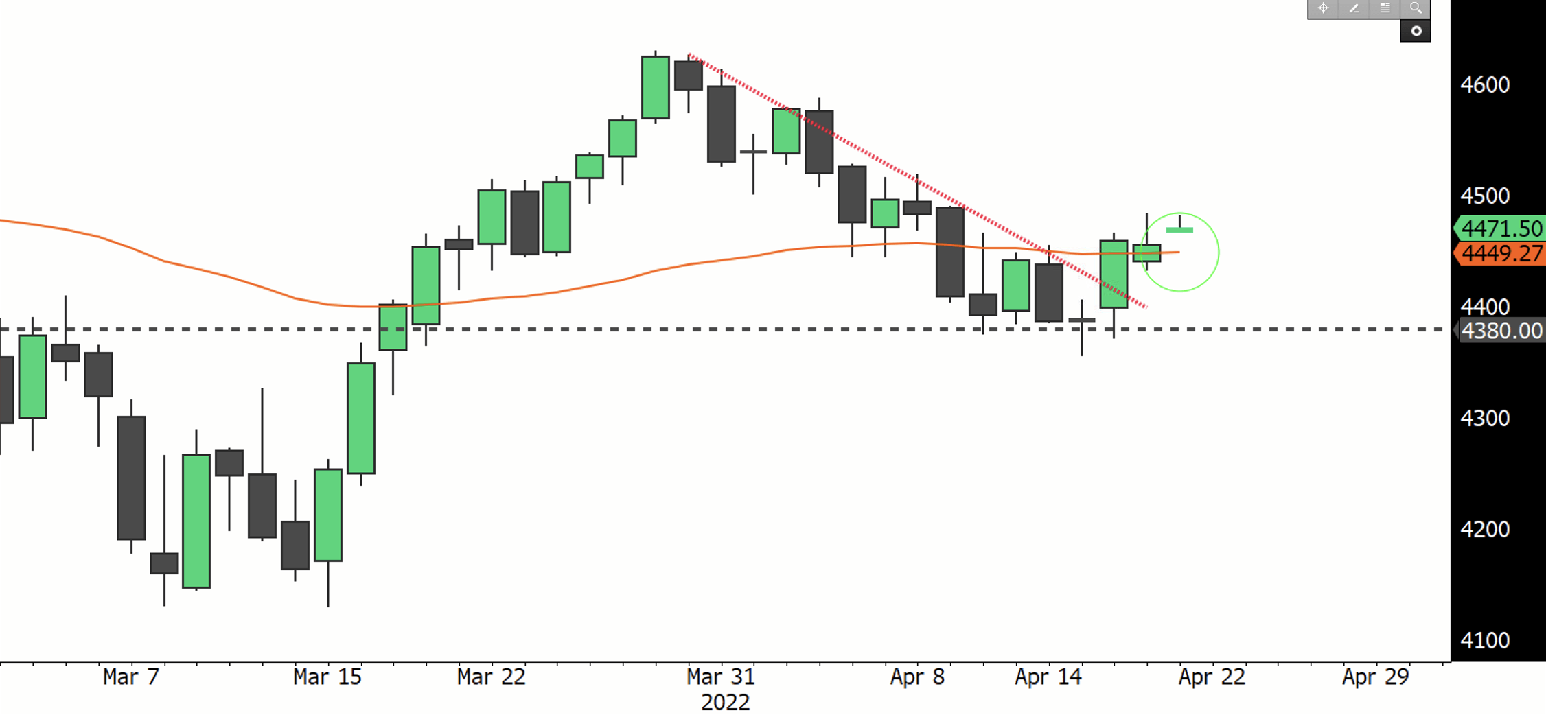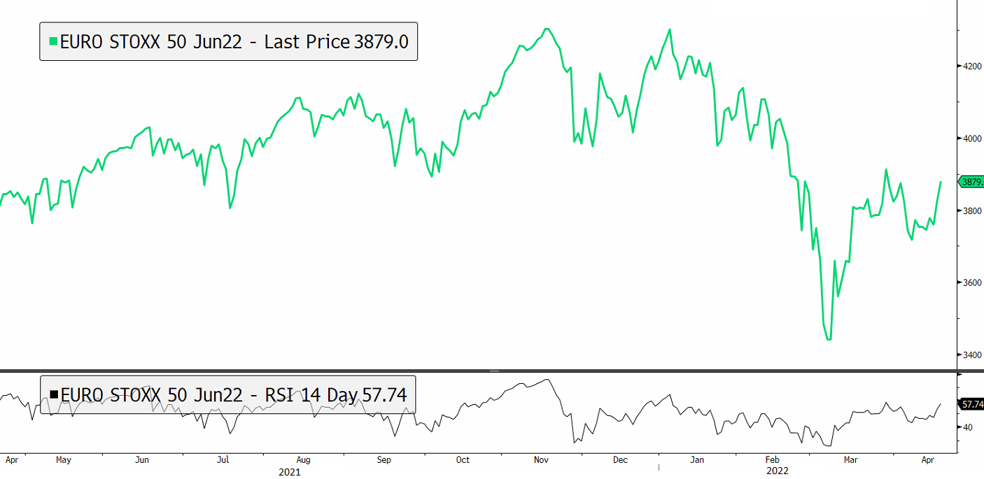 The European Central Bank's first interest rate hike in more than a decade could come as soon as July, a prospect that is boosting the euro and European stocks. Four officials said in recent days that the ECB may raise its deposit rate from minus 0.5% early in the third quarter after ending asset purchases. Despite the deteriorating outlook, central bankers are looking to tame inflation in the eurozone, which is nearly four times the 2% goal. Signs of inflation cooling in the next few months could lead to officials reconsidering their hawkish views. In the meantime, money markets suggest traders are betting on three 0.25% ECB rate hikes by December. Investors look at the market in terms of "real rates", that is interest rates after considering inflation, which would still be negative even after several rate hikes. The Stoxx50 climbed 1.4%, to almost a 1-month high at EUR3'877.