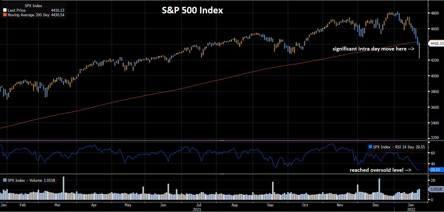 Fed Chief, Powell, confirmed it will complete its monthly bond-buying in March and signalled a rate hike for the same month. It plans to let bonds mature as a method to reduce its balance sheet over time and has not decided on the timing and pace of balance sheet reduction. It restated that inflation is high and well above the Fed's target. It added, the US economy no longer needed a sustained high level of policy support. In sum, the Fed made no particular change to its previous communications. US Fed futures imply 4 rate hikes. The yield on the US 10 year Treasury Note stands at 1.84%, up from 1.78%. Markets are volatile and significantly lower following Fed Chair's press conference.