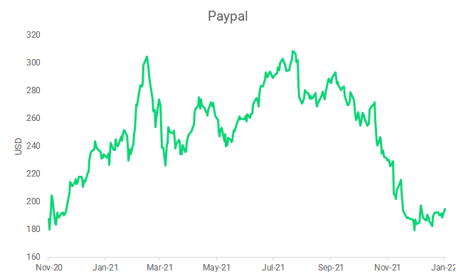 Paypal received an upgrade from BMO Capital yesterday with a price target of USD224 (+15% upside potential), mentioning that the company is set to benefit from strong growth ahead. On a technical picture, the stock is down 38% from its peak of USD307 in January 2021.