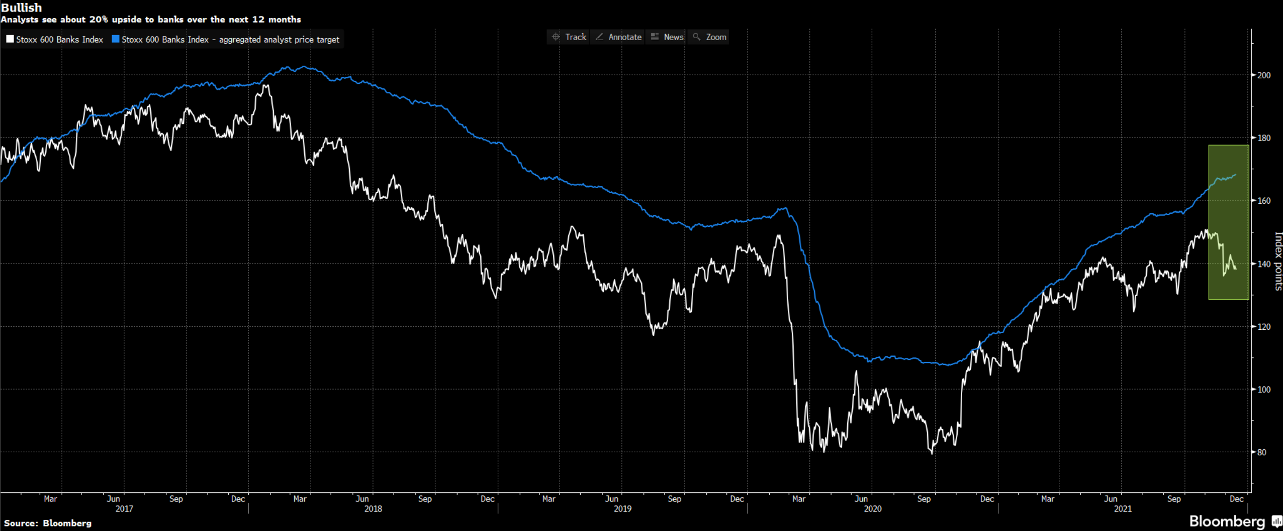 The technical picture for the S&P500 is mixed, with momentum still weak. We also note RSI has rebounded to mid range. The next 2 days should give some answers. Interesting to note, that only roughly 1/3 of all stocks (as of 12/20 close) are trading above their 20-day moving average (m.a.) while 38% are above their 50-day m.a. Finally, the percentage of S&P500 stocks above their 200-day m.a. is just 58% as of 12/20/21 close. That’s an astoundingly low number considering that the S&P500 is so close to all high high territory. This explains how the broader market has suffered more damage when excluding the Large-Cap Technology stocks since mid-November. Investors are increasingly selective and searching for quality/stable earnings growth at attractive valuation multiples.