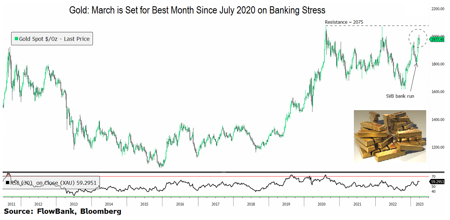 Gold just had its best month since July 2020! Could gold still make a run if the banking stress subsides?