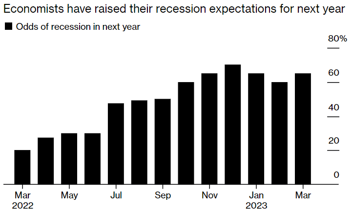 The odds of recession according to economists have increased to 65%, as of 1st of March. Add to it the banking crisis, those odds will probably show at 75-80% next month. On the positive, the tightening financial conditions should help lower inflation.