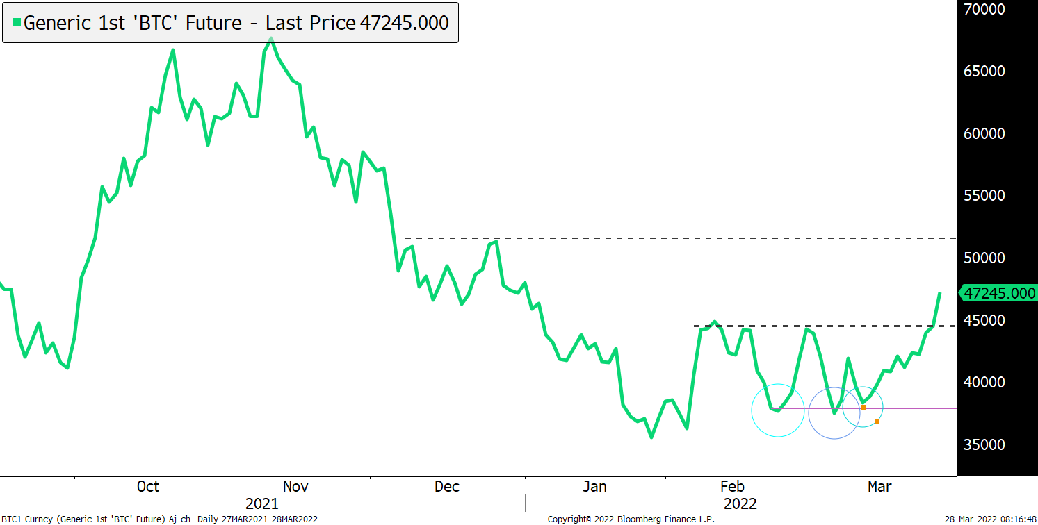 Bitcoin extended its decline to less than USD43'000 at one point, a two-week low, before recovering to USD43'500. Expectations of tighter monetary conditions continue to dampen risk-sentiment. The drop in digital assets overall continues to mirror the direction of equities, with a high correlation. For clues on whether Bitcoin will rebound to its Tuesday highs of USD47'000, traders may pay attention to the volatility in markets, as recent communication by Fed officials has been difficult for markets to digest, increasingly pricing steeper tightening, which could endanger the global recovery. On a technical picture, a strong move past the 50-day moving average (USD43'542) should be a positive signal for a resumption of the uptrend.