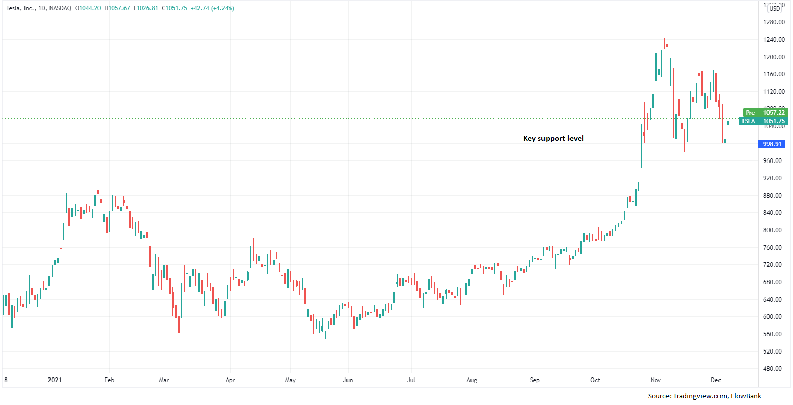 Tesla China November sales per CPCA were 52.9k vs 55-60k expected. Exports totaled 21.1k vs 31.7k for domestic sales. Record for domestic sales, but exports were lighter than expected. The pandemic most likely continues to present challenges for supply-chains, Tesla included. Traders will be keeping an eye on key support level of $1,000 for $TSLA stock. Amid the market wide sell-off, Tesla stock has corrected together with competitors Rivian and Lucid. Massive valuations for these pure EV companies continues to be highly debated amongst investors. Pre-market Tesla stock is pressured -1.6% at $1,035 versus +0.5% for Nasdaq 100 futures.