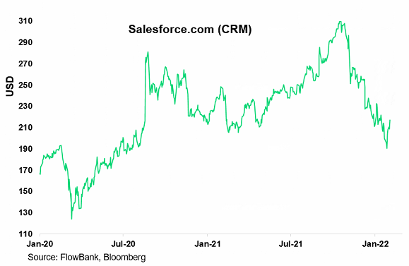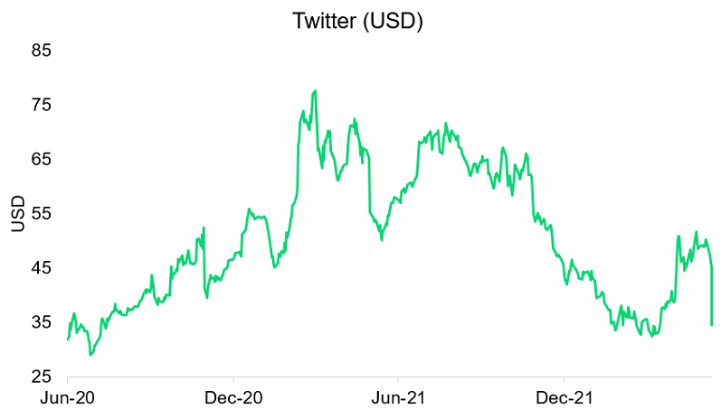 Twitter shares extended down 23% as Elon Musk tweeted the deal is temporarily on hold pending details supporting the calculation that indeed spam/fake accounts represent less than 5% of users. The change of the Tesla CEO comes at a time when stocks of tech companies are facing intense pressure. Could Elon look for more attractive buying opportunities or simply make a lower Twitter offer down the road?