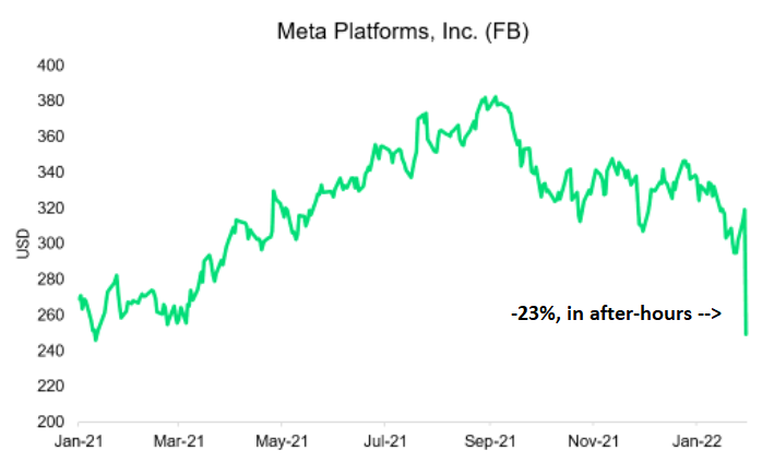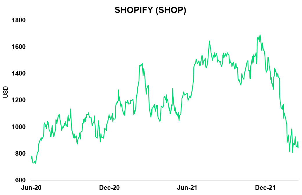 Shopify reported better than expected quarterly profit and revenue. The e-commerce platform operator nonetheless is seeing its stock drop 9.5% in pre-market as it forecasts a slower growth for 2022, than the 57% growth it achieved in 2021. We are seeing a similar pattern for dynamic high-growth names, in which a slight growth deceleration can pressure stocks to the downside, at least in the short term. Valuation for Shopify stock has compressed significantly, and at USD800 the stock is down approximately 52% since its peak in November 2021.