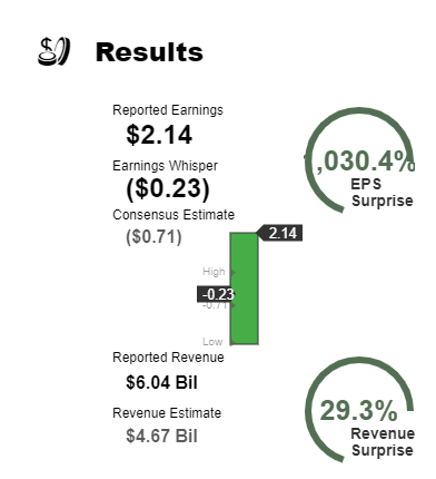 First = we want to establish that the earnings report was ‘good’ by ticking off that all the metrics beat consensus expectations.