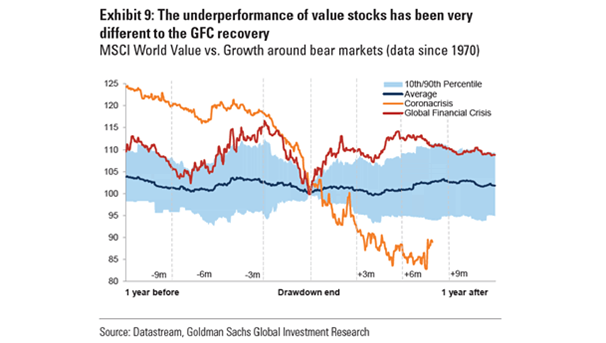 We have been through an extraordinary period of value factor underperformance over the last 15 years. There were only two periods of extreme divergence in style performance over the last 30 years: the “Tech Bubble” (growth outperformed sharply between 1994 and 2000) and the pre-GFC (Value outperformed sharply between 2000 and 2008). Historically, a brutal style rotation took place in each of the two previous extreme periods (see chart below).