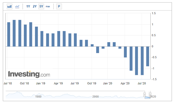 Switzerland’s Consumer Price Index (CPI) dropped 0.9% y/y in July- that was higher than the -1.1% forecast and the -1.3% prior but marks a sixth consecutive month of annual deflation.