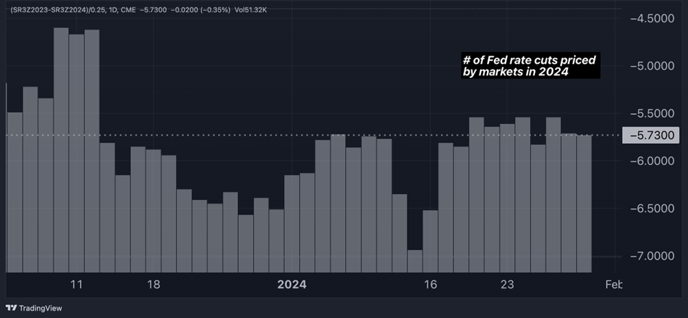 Markets are filled with anticipation to learn if the Federal Reserve is inclined to cut interest rates in March or to maintain the current higher rates for an extended period. Traders are currently assessing a 50% probability of a rate cut in March, but they have already factored in the possibility of as many as six rate cuts by December.