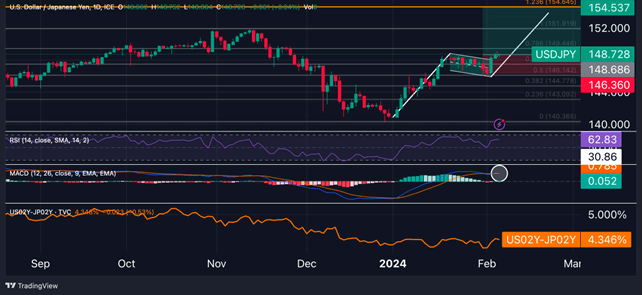 Still, the substantial yield differential, exceeding 400 basis points in 2-year bonds, poses a considerable challenge for anyone contemplating short strategies on this currency pair. In the absence of a substantial policy shift by the Bank of Japan, the yen appears set to continue its decline against the greenback.