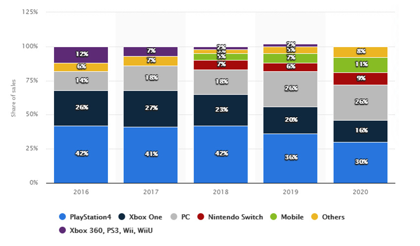Figure 2: Ubisoft diversifies its sales channels with PC and PlayStation leading