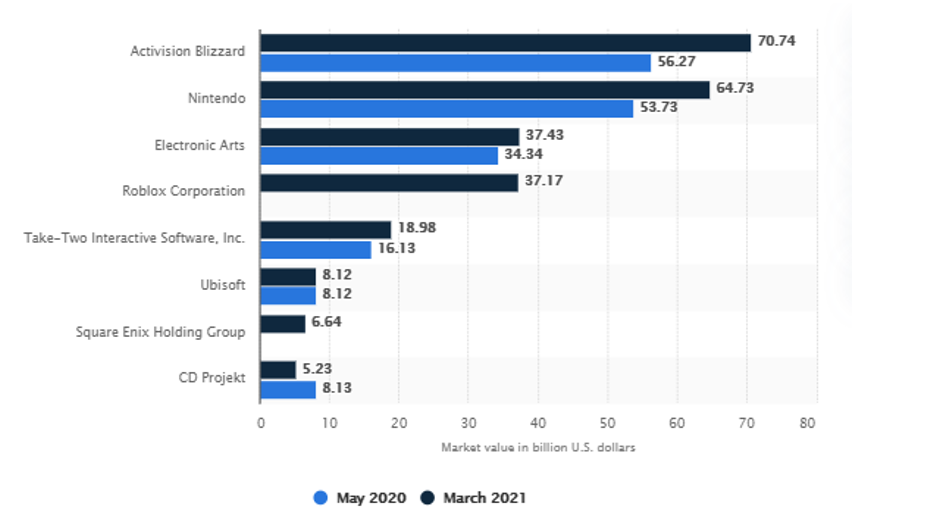 Figure 5: Ubisoft faces competition from Roblox and household top dogs Blizzard, and Nintendo.