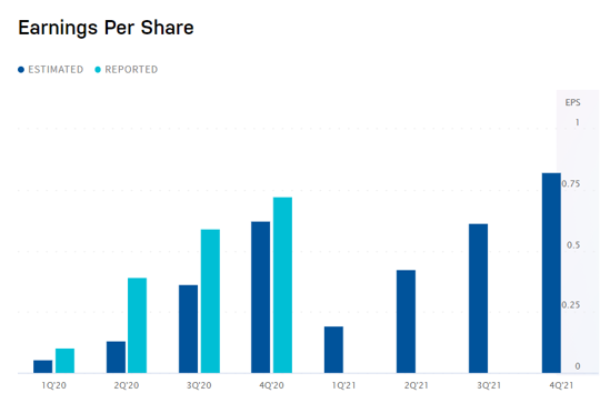 Yeti is nothing short of a success story and this fact is illustrated in its share price growth over time. After joining the NYSE in 2018 at a humble $18 per share, the firm now boasts of roughly $85 per share, a market cap north of $7 billion, and earnings per share that constantly seem to beat out earnings expectations and surprise analysts.