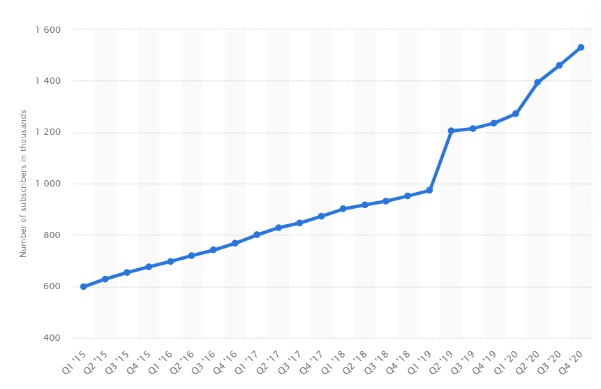 Figure showing Vimeo subscriber growth worldwide since 2015