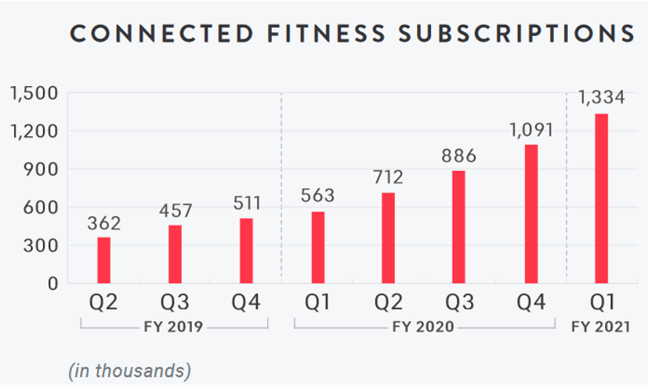 - Peloton became profitable in 2020, benefiting from a surge in demand during covid-led stay at home orders;
