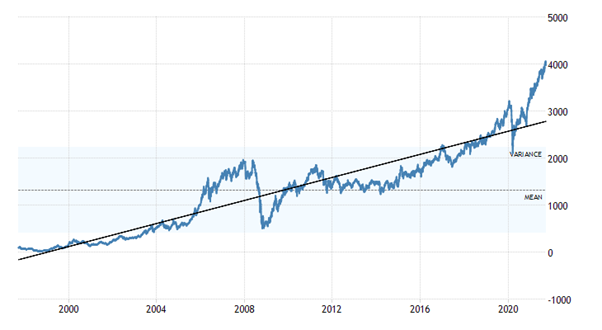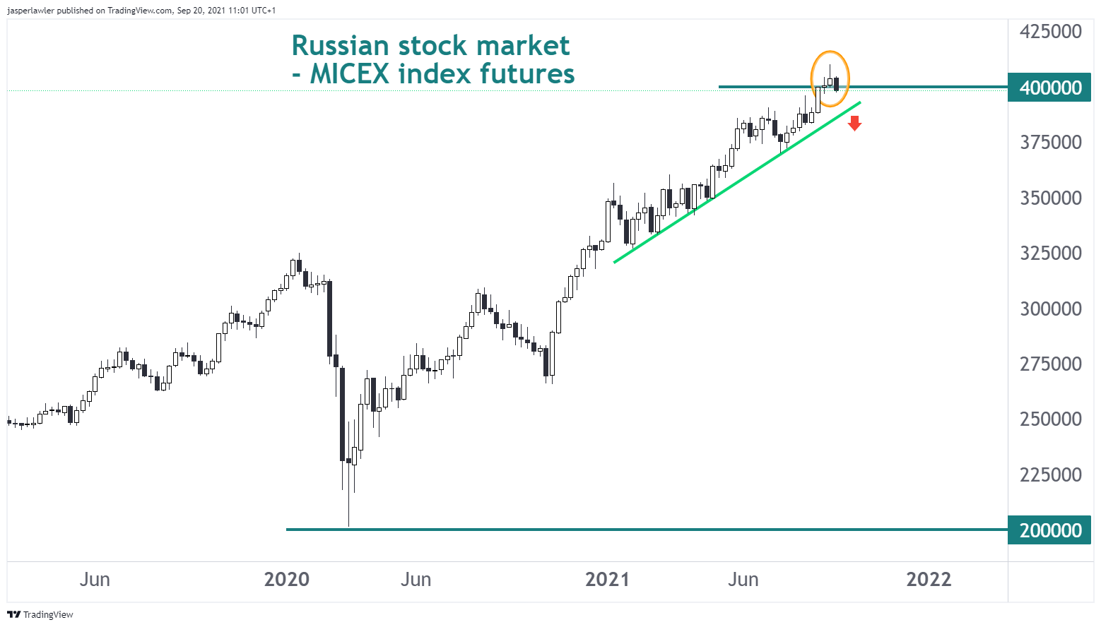The MICEX, which include the 50 biggest names in corporate Russia, including the like of Gazprom, Rosneft, Sberbank and Aeroflot has doubled from 200,000 rubles in March 2020 to 400,000 in September 2021.