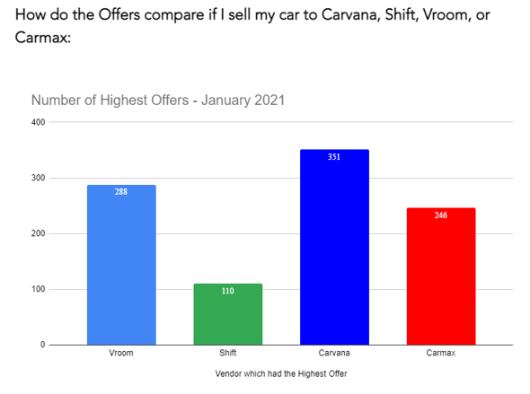 Higher used car prices naturally mean that it is easier to increase gross profits. But the truth is that this cannot last forever and eventually, the supply side will catch up, bringing prices down. But as shown in the graphic below, Carvana is a very competitive place for sellors get top offers, according to withclutch.com research: