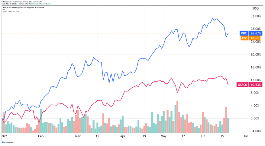 Figure 1: Invesco Commodity Index vs. S&P 500