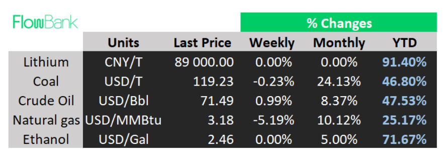 Energy prices are forecast by the World Bank to grow 33% in the second half of 2021, and slightly less in 2022 as supply constraints fall and demand stabilizes to a new normal. Lithium has surged because of a ramp up in EV demand, Coal has risen to new heights in what is dubbed a surprising turn of events with China taking center stage as a net exporter, and crude oil has made the quickest recovery of all commodities with OPEC sealing a deal to increase production in July Natural gas has risen in demand, but prices are cooling off due to seasonality and weather disruptions, and ethanol is seeing tailwinds from a drive to see more renewable energies from the Biden administration.