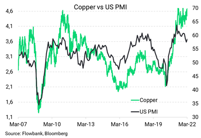 Le cuivre est considéré comme le métal indicateur de l'économie mondiale en raison de sa large utilisation, et lorsque la croissance mondiale commence à montrer des signes de pic, le prix du métal rouge commence à baisser. Bien que cela ait été vrai historiquement, nous pensons que cette fois-ci, le cuivre bénéficie de solides fondamentaux à court et à long terme qui pourraient propulser son prix à la hausse plus longtemps.