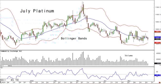 Pour l'avenir, les perspectives du platine semblent orientées à la baisse, étant donné le caractère apparemment inévitable d'un nouveau resserrement des banques centrales et les risques d'un ralentissement mondial. Avec une inflation qui reste à des niveaux élevés et qui devrait persister pendant la majeure partie de cette année, des conditions financières plus strictes et des restrictions continues de l'offre liées au COVID et à la violence actuelle en Ukraine, les prix du platine peuvent facilement chuter davantage jusqu'à la fin de l'année.
